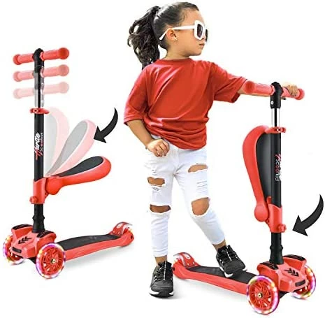 - โก๏ธ FUN KIDDIE EXERCISE – A 2-in-1 gift that challenges traditional scooting in a way that’s more fun. The removable flip-out seat and foot pad allows your child to scoot sitting or standing up.
