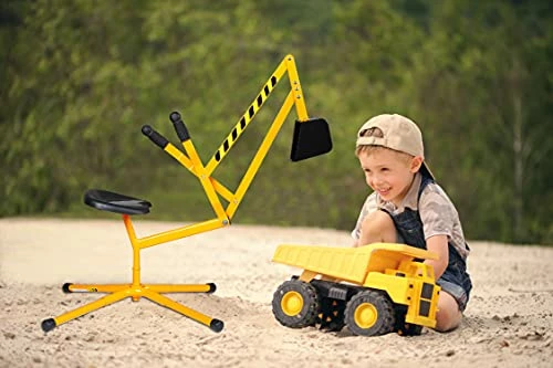 - ๐ 360ยฐ Swivel Seat: The comfortable 360ยฐ rotation PP seat of a ride-on sand excavator can work in all directions, like a real excavator. The widen base can increase stability, size: 18.1″ x 18.9″.