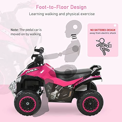 - RIDE ON ATV DIMENSIONS: Overall Dimension: 26.5″ L x 15″ W x 17.25″ H, Suitable for 18-36 months old, Weight Capacity: 44 lbs. NOTE: Drive mode is non-electric, driven by two legs sliding.