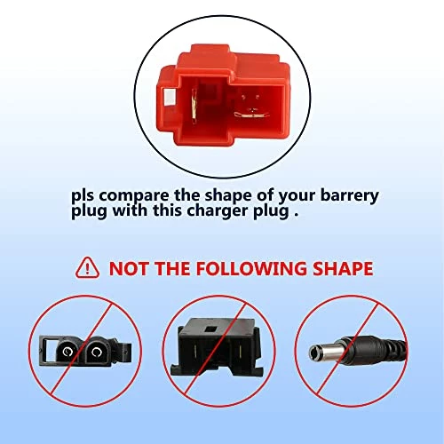 - โ ใPower Specificationใ:Input: AC 100-240V 50/60Hz; Output: DC 14.4V 1A; Connector: Square-Type Plug; Cable Length: 6.6FT; MODEL: SL12-07-02. Only fits 12 volt battery with “RED” connector (Note: the output voltage of 14.4V is applicable to the 12V battery, and the 12V battery cannot be fully charged with a voltage lower than 14.4V)
