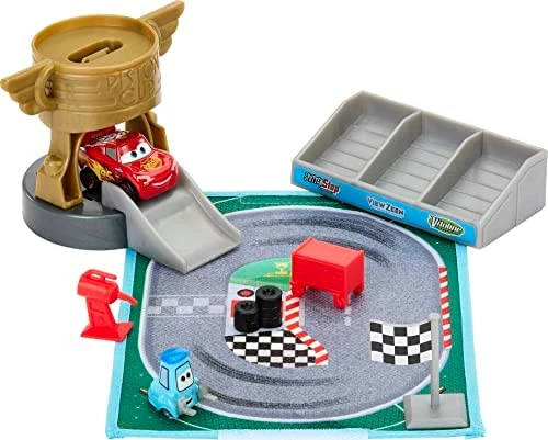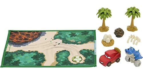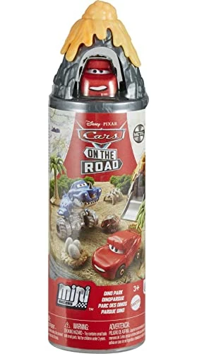 - Take fun on the road with Disney Pixar’s Cars On-the-Go Mini Racers Dino Park playset featuring the iconic location from the Disney+ Cars On The Road series.