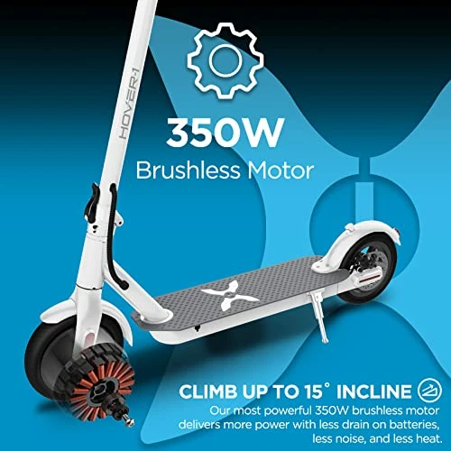 - POWERFUL ELECTRIC SCOOTER – The Hover-1 Journey Electric Scooter boasts of a powerful 300W brushless motor, with enough torque to easily get up inclines of up to 15 degrees. High traction 8.5″ rubber tires offer a smooth and comfortable ride