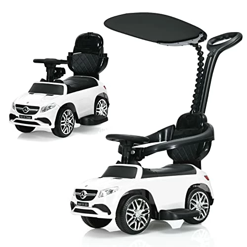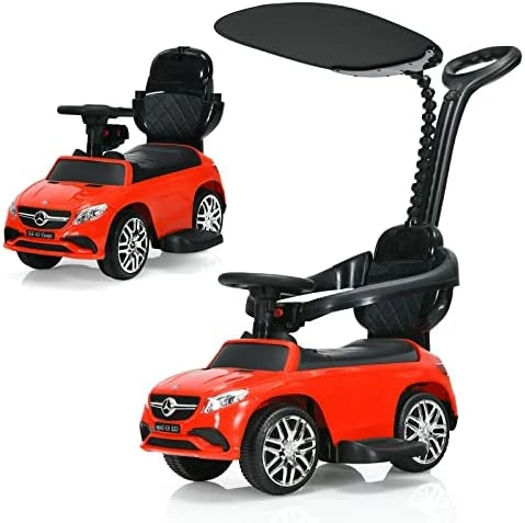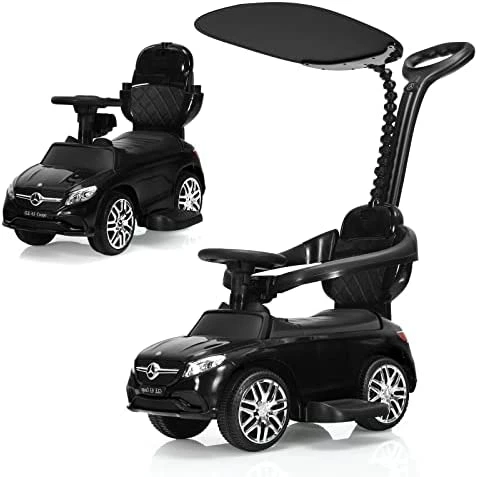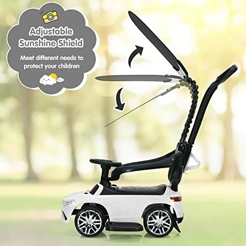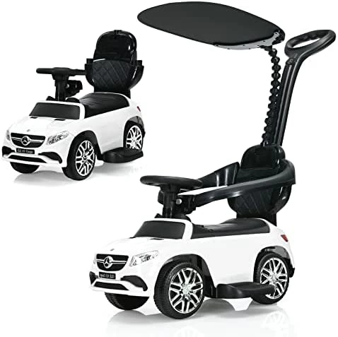 - πFun with Realistic Driving Experience: This sliding car has a realistic Mercedes Benz Car design, which features with a rotatable steering wheel, a music and horn push button. It can offer kids real driving experience and bring them endless fun while playing.