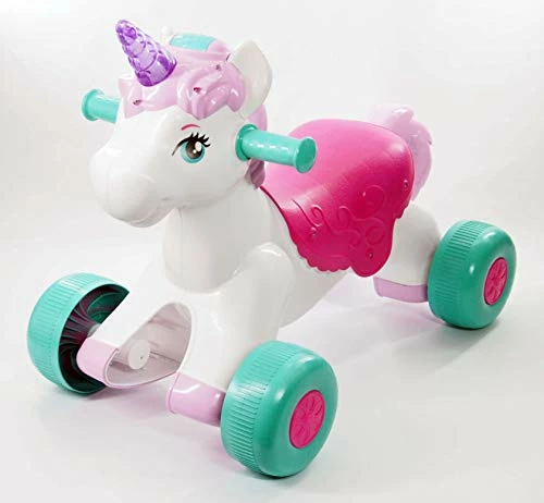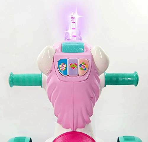 - Hear realistic trotting and whinny sounds with flashing colorful lights!
