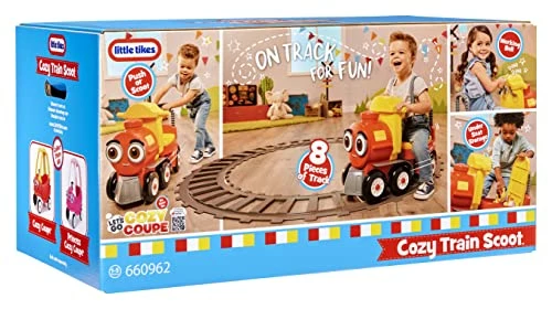 I got this Little Tikesยฎ Cozy Train Scoot Ride-On with Track for my 1 and 3 year olds, both are close to turning 2 and 4 respectively. Assembly was easy and only took a few minutes, though obviously it does take up a lot of space for the track.I really like the โtrainโ itself, itโs built perfectly for 2-4 year olds, though even my 6 year old was able to still sit on it and move it around.I do think they could have done more with the track, maybe make the train motorized for the track only or something like that. I mean since the track isnโt really necessarily I ended up putting the track away after only a week and havenโt brought it out since. So I definitely feel like more could have been done with the track. But overall the kids have been having lots of fun with the train itself.
