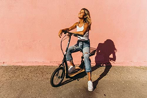 As more people go car-free, going green has never been so stylish with the sit-down Razor EcoSmart Metro HD Electric Scooter. Its comfortable padded seat, and wide bamboo deck for plenty of foot room, make this versatile scooter the perfect ride for neighborhood or cross-campus trips (local laws will apply). Its 16″ (406 mm) pneumatic tires provide a smooth, comfortable ride for quick trips to the store, farmers market, rec center, or wherever you need the ease and versatility of sitting down or carrying things with you. Featuring a detachable basket and luggage rack, this all electric scooter with a 36V lead acid battery system and plug-in charger, requires no gasoline, making it an economical and eco-friendly alternative to make local trips. With its quiet, high-torque, 350-watt hub-driven motor, the Razor EcoSmart Metro HD Electric Scooter can reach speeds up to 15.5 mph (25 km/h),boasts an up to 12-mile (19 km) range and up to 60 minutes of continuous use. Whether youโre a college student, an ecoconscious adult, or an energetic senior โ getting to class, running errands or zipping around the neighborhood on the Razor EcoSmart Metro HD Electric Scooter will quickly become your favorite part of the day. Bring your light to ride it after dark.